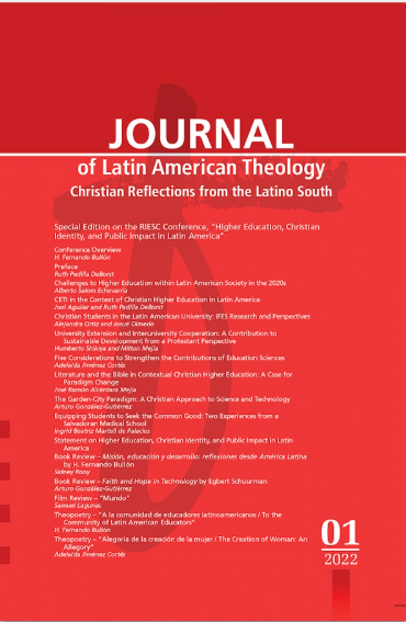 (from the publisher) This issue of the Journal of Latin American Theology presents some of the papers given at the Seventh Latin American Conference of the Red Internacional de Educacion Superior Cristiana (RIESC). Designed around the theme "Higher Education, Christian Identity, and Public Impact in Latin America," the authors herein explore the challenges and the people involved in the three primary tasks of a university: teaching, research, and community engagement through university extension projects. Alberto Salom Echevarria's keynote address lays out the seven primary challenges that secular and faith-based universities alike are facing. The three articles that follow feature concrete examples of successfully facing some of the challenges. These are by Joel Aguilar and Ruth Padilla DeBorst with CETI; Alejandra Ortiz and Josue Olmedo with IFES; and Humberto Shikiya and Milton Mejia with Qonakuy. In the next four articles, professors in different fi elds interact with the RIESC conference theme from within their specific disciplines. This includes Adelaida Jimenez in educational sciences; Jose Alcantara Mejia in literature and the arts; Arturo Gonzalez-Gutierrez in engineering; and Ingrid Beatriz Martell in health sciences. After the final statement from the conference, book reviews by Sidney Rooy and Arturo Gonzalez-Gutierrez continue the theme of Christian higher education. A film review by Samuel Lagunas explores the worldview of a Protestant evangelical indigenous woman, and two poems close this volume with reflections on God's work as the Divine Educator and as the tender Creator of woman.